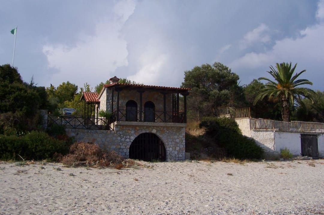 Beachbar vom Srand aus mit ehemaligem Bootsverleih.