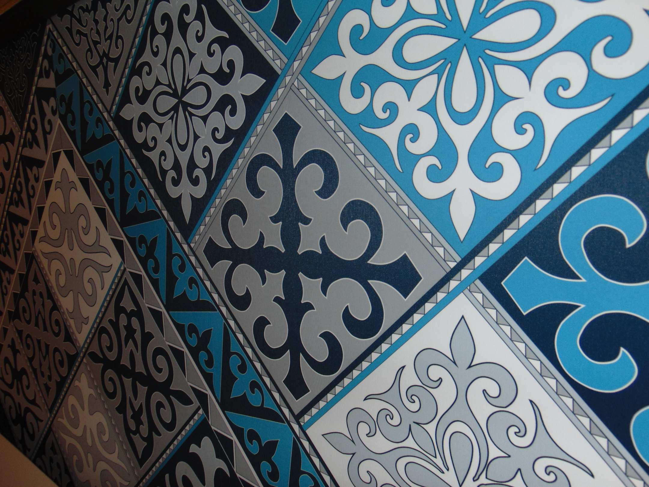 Ethno-Muster als Eyecatcher an der Wand hinter dem Bett