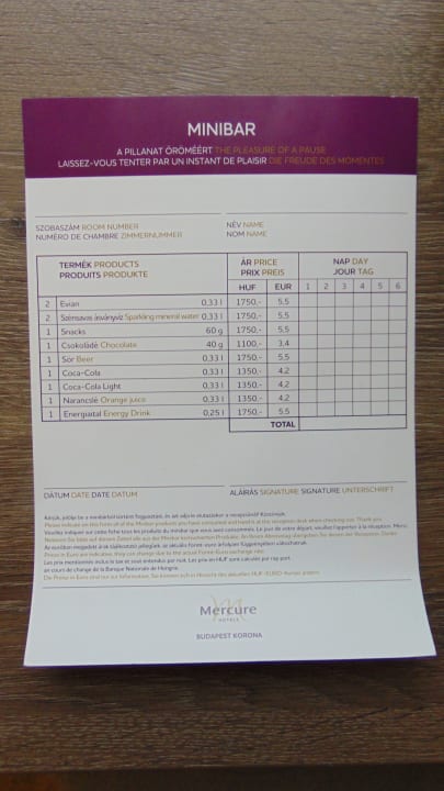 Zimmer Mercure Budapest Korona Hotel