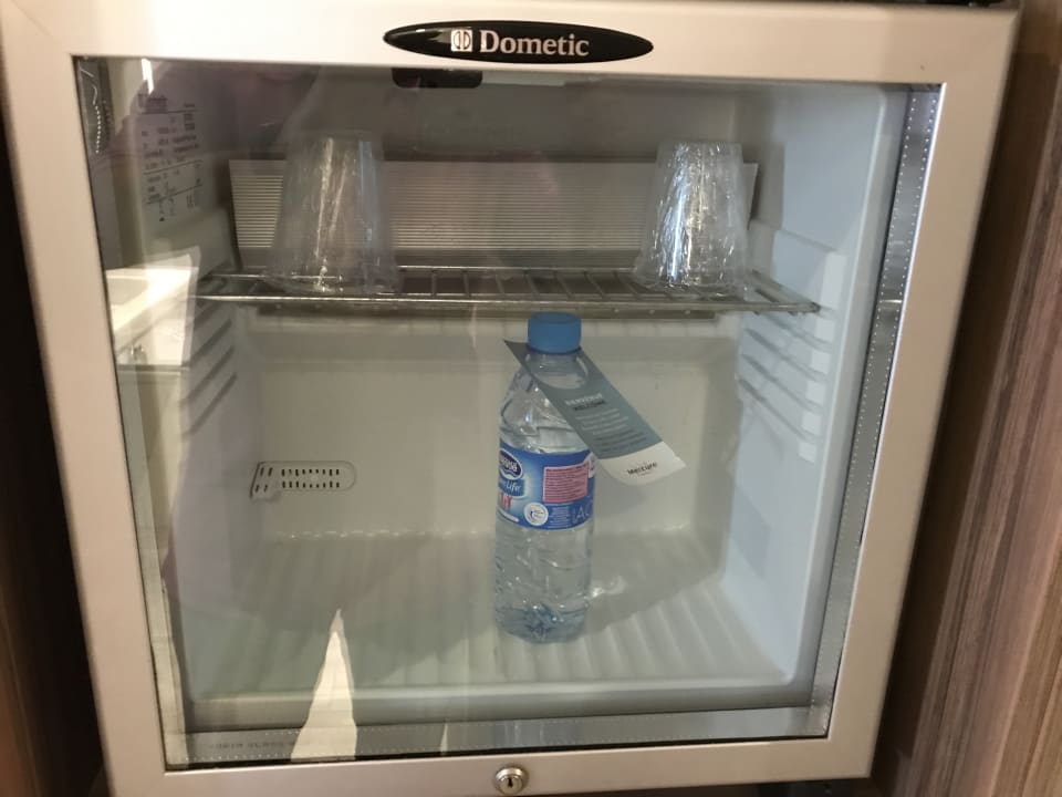 Kühlschrank und 1 kleine Flasche stilles Wasser (kostenlos)