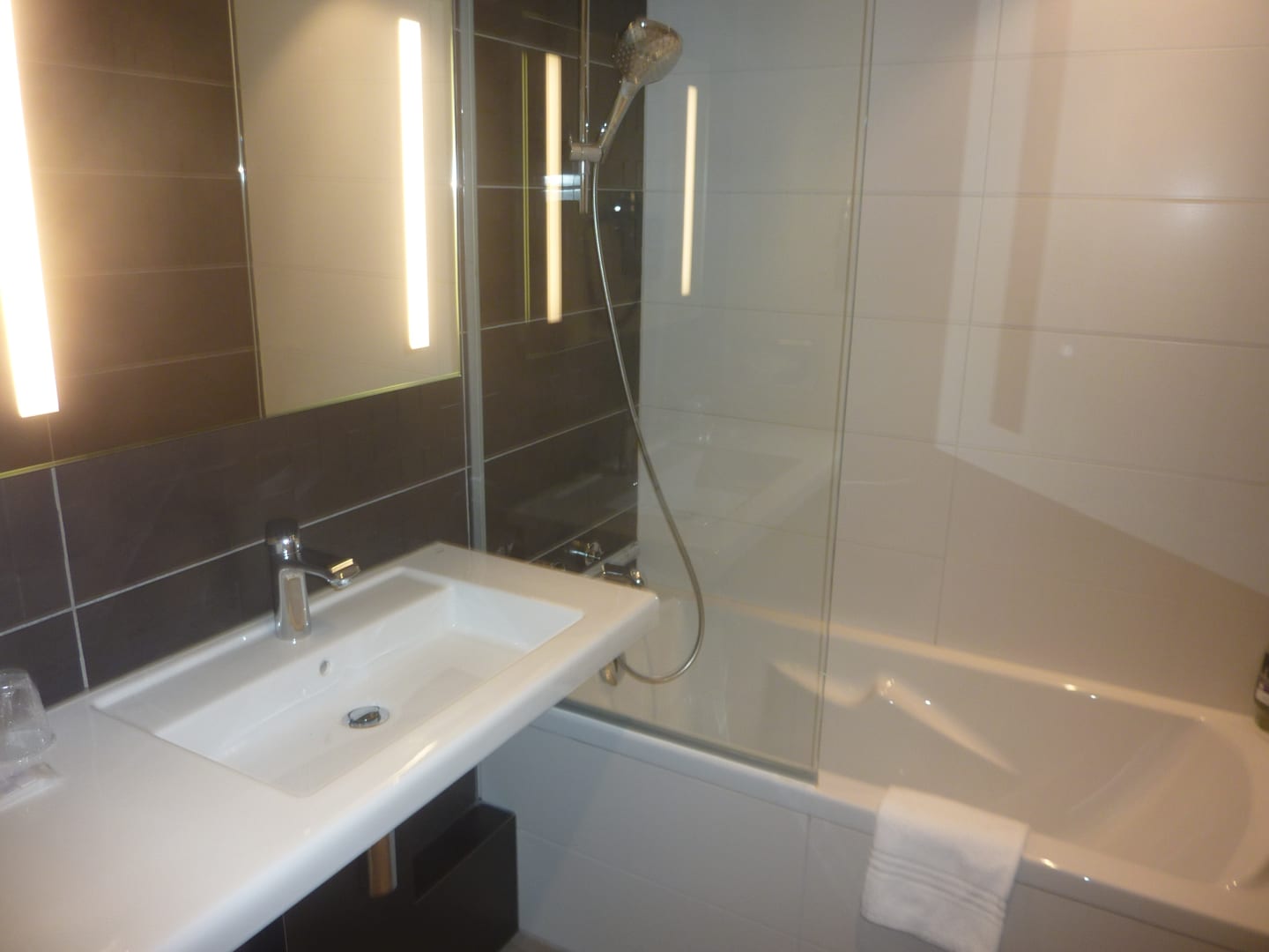 Bad; negativ: sehr hohe Badewanne