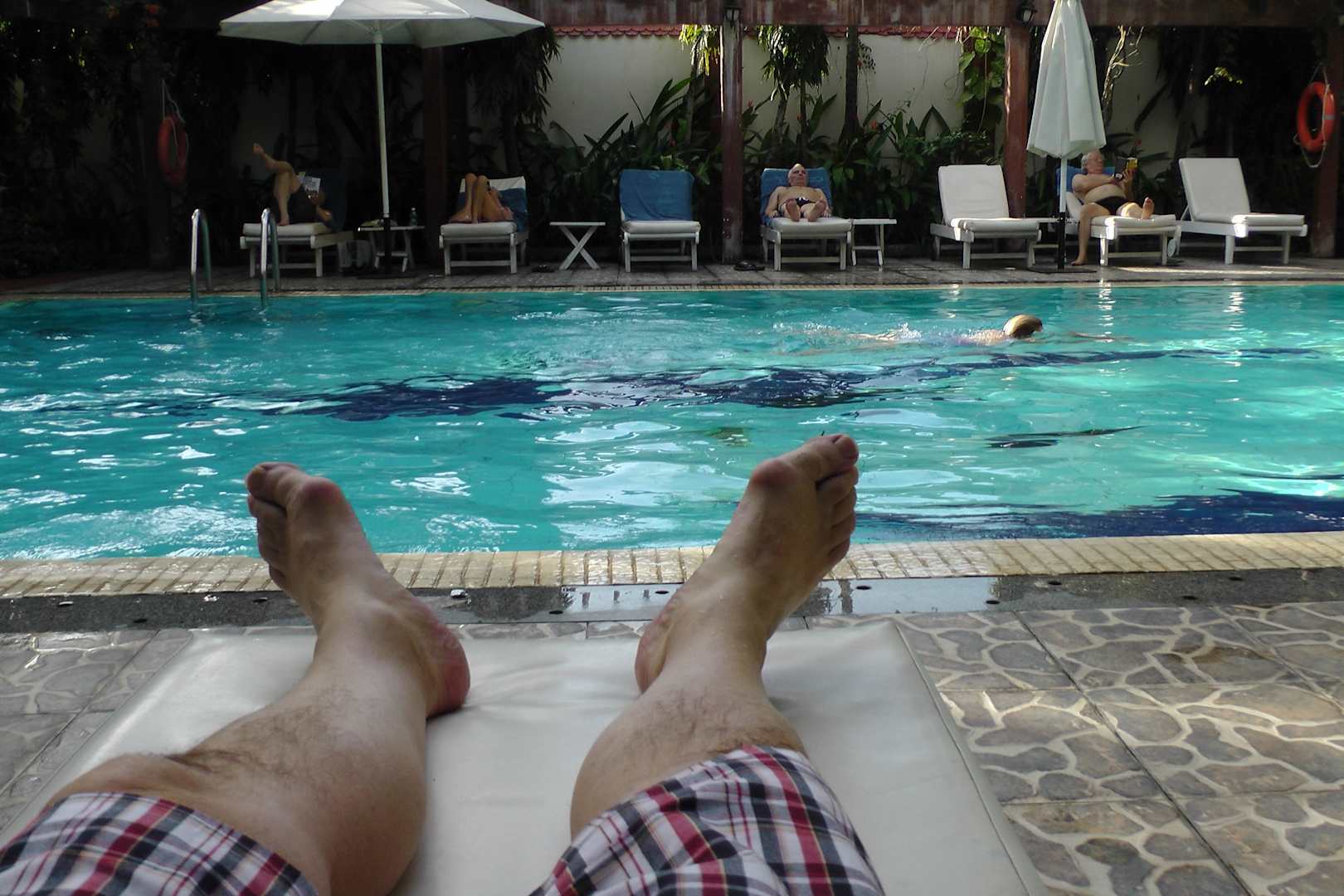 warmes Wasser am Pool mit ausreichend Liegen für alle Hotelbewohner.