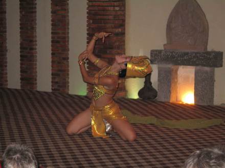 AbendshowAllabendlich gibt es im Restaurant eine Showvorführung mit traditionellen Tänzen (hier: Apsara-Tanz) und Musik aus Vietnam und Kambodscha.