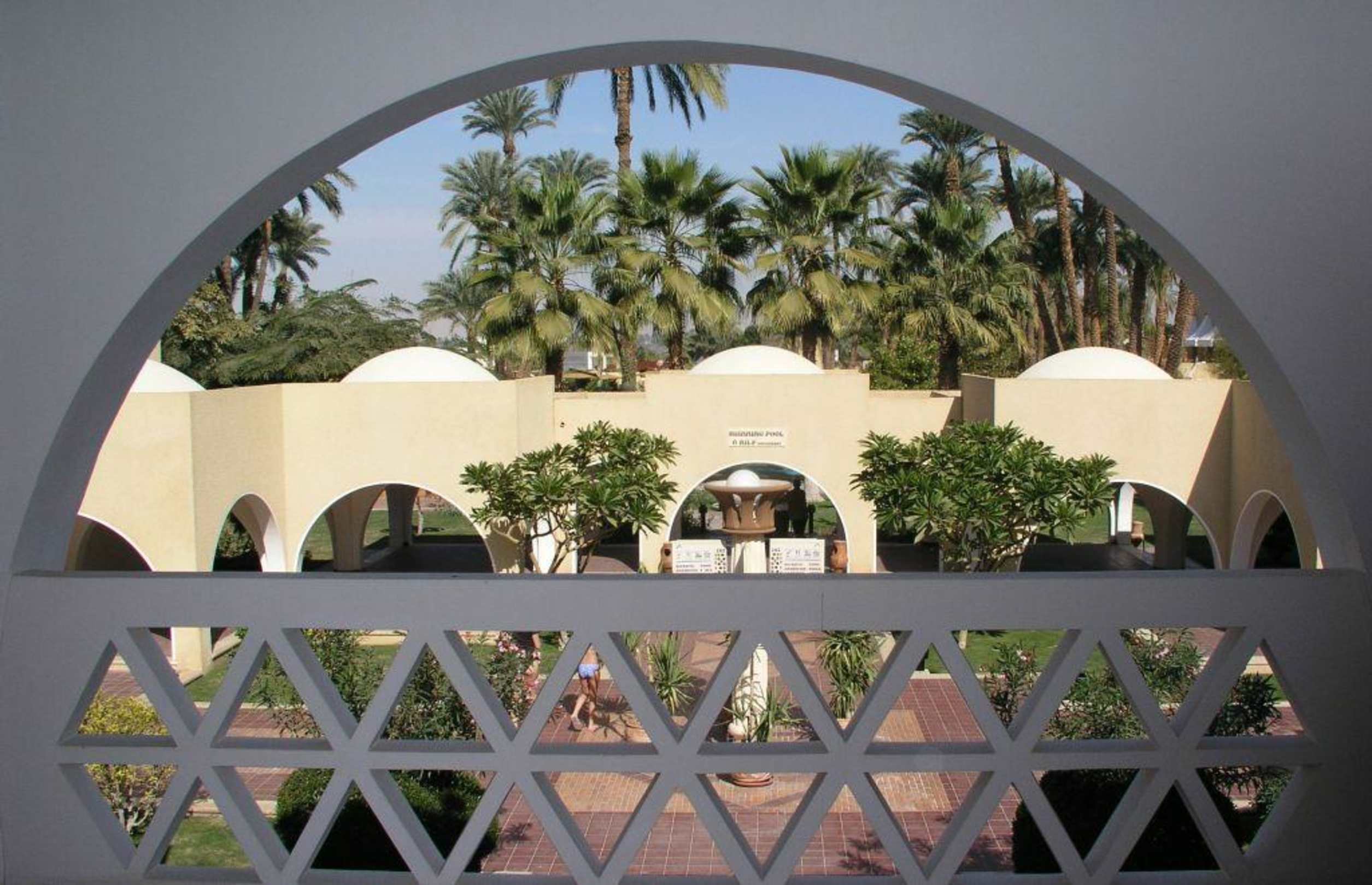Palmen RundbogenDies ist der Blick vom oberen Flur auf eine der Kreuzungen im Hotel. Sehr schön wie ich finde.