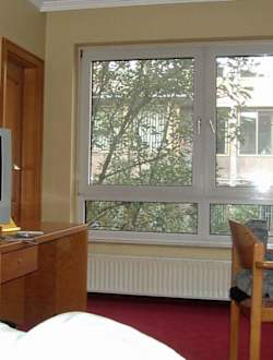 Keine Rolläden, keine Vorhänge. Furchtbar. Man sieht sogar vom Bett aus die total dreckigen Fenster.