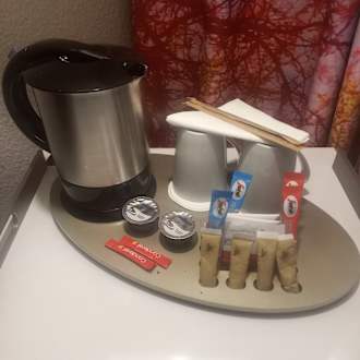 ZimmerEs gibt Kaffeekapseln, aber nur einen Wasserkocher