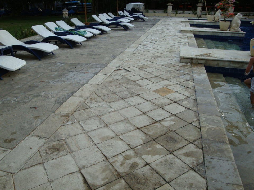 Die Poollanschaft ist alt und schäbig, für ein 4 Sterne Resort völlig unangemessen.