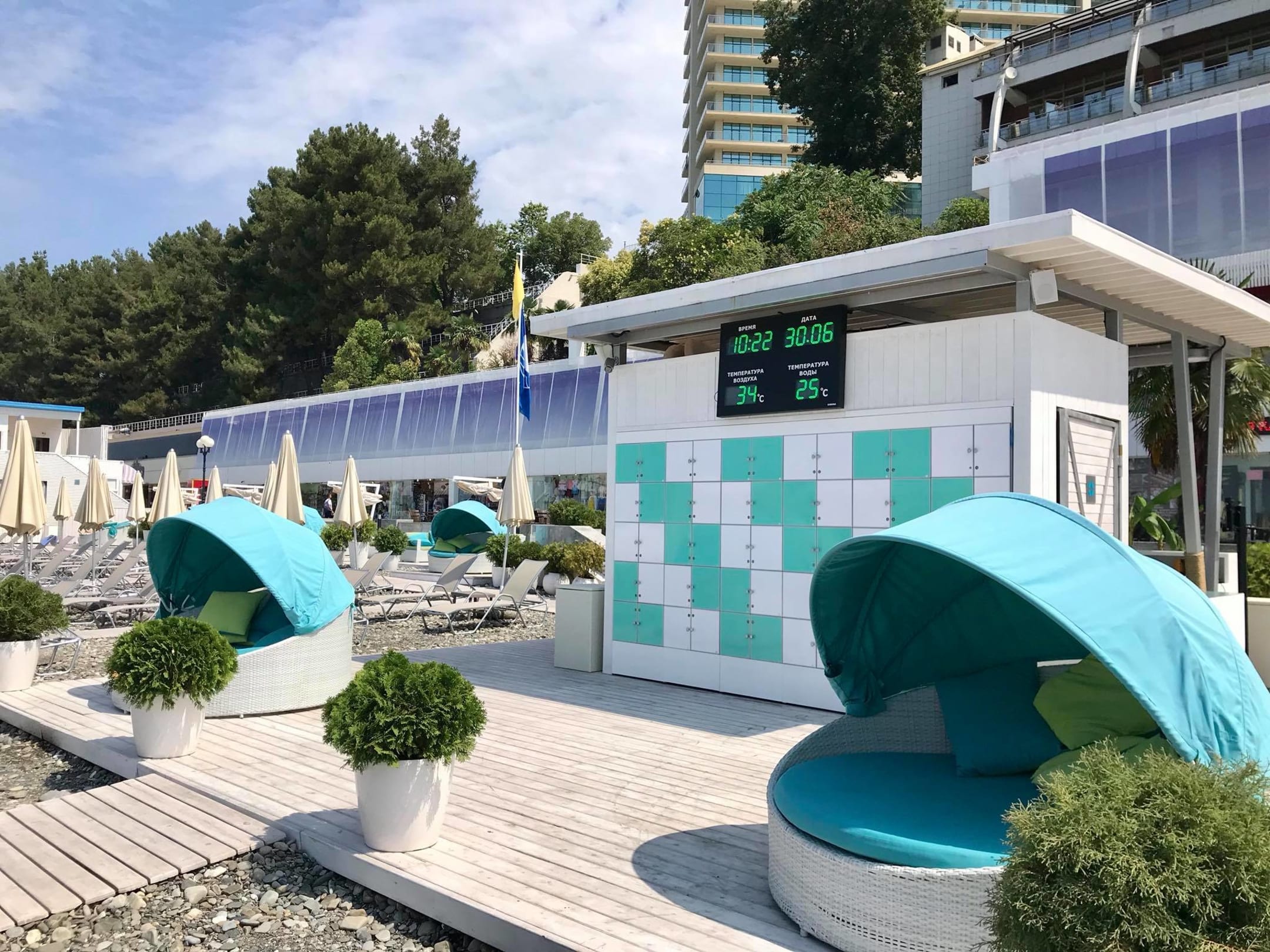 Hotelstrand und im Hintergrund das Hotel