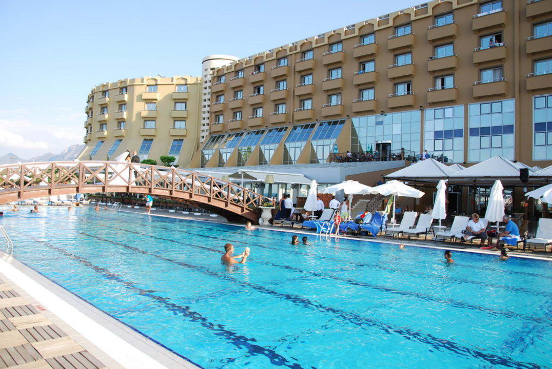 Widok na hotel z leżaka nad basenem