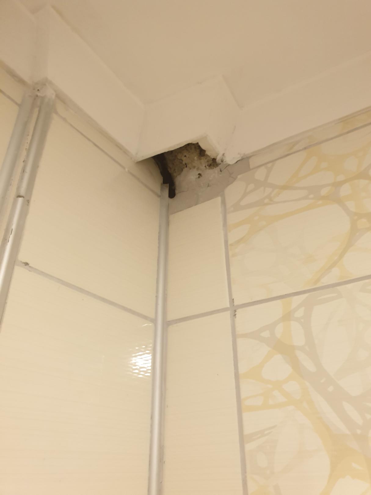 Loch in der Badezimmer Decke wo Wasser rauskommt