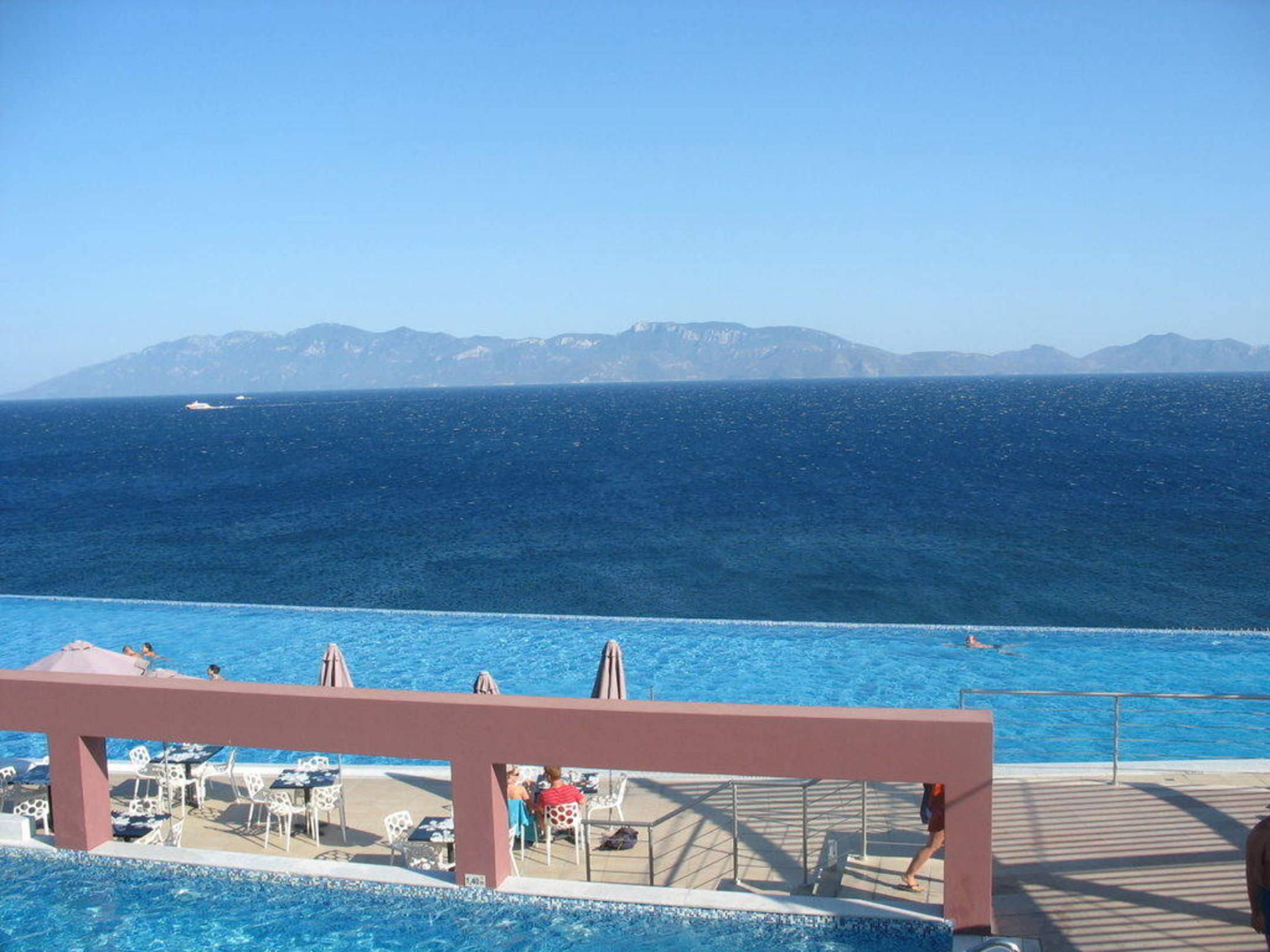 Ausblick auf den Pool vom Zimmer