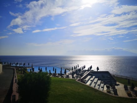 Ausblick auf den Pool und das Meer.
