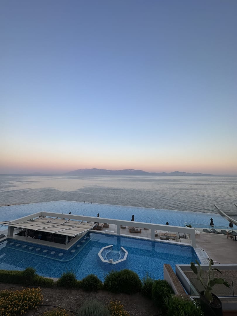 Ausblick vom Balkon der Suite, morgens bei Sonnenaufgang.