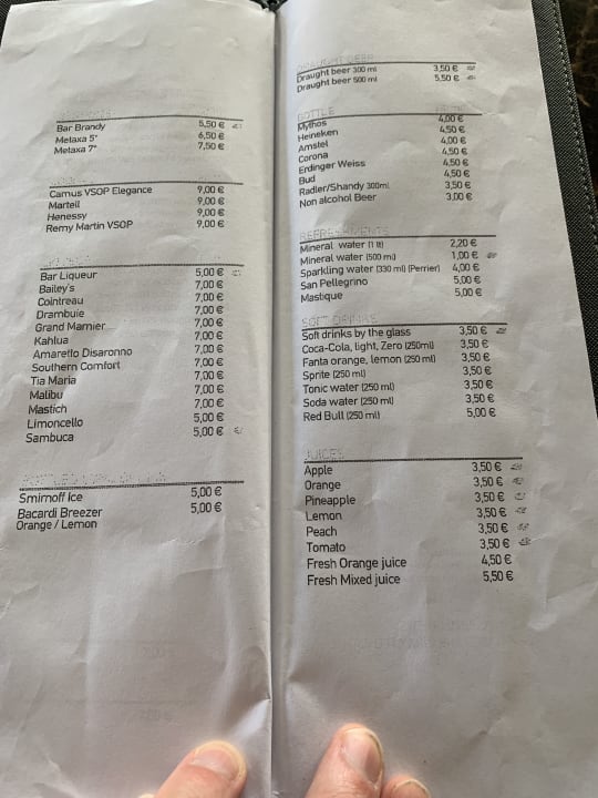 Getränkekarte - die mit dem Kreis sind bei AI mit drin