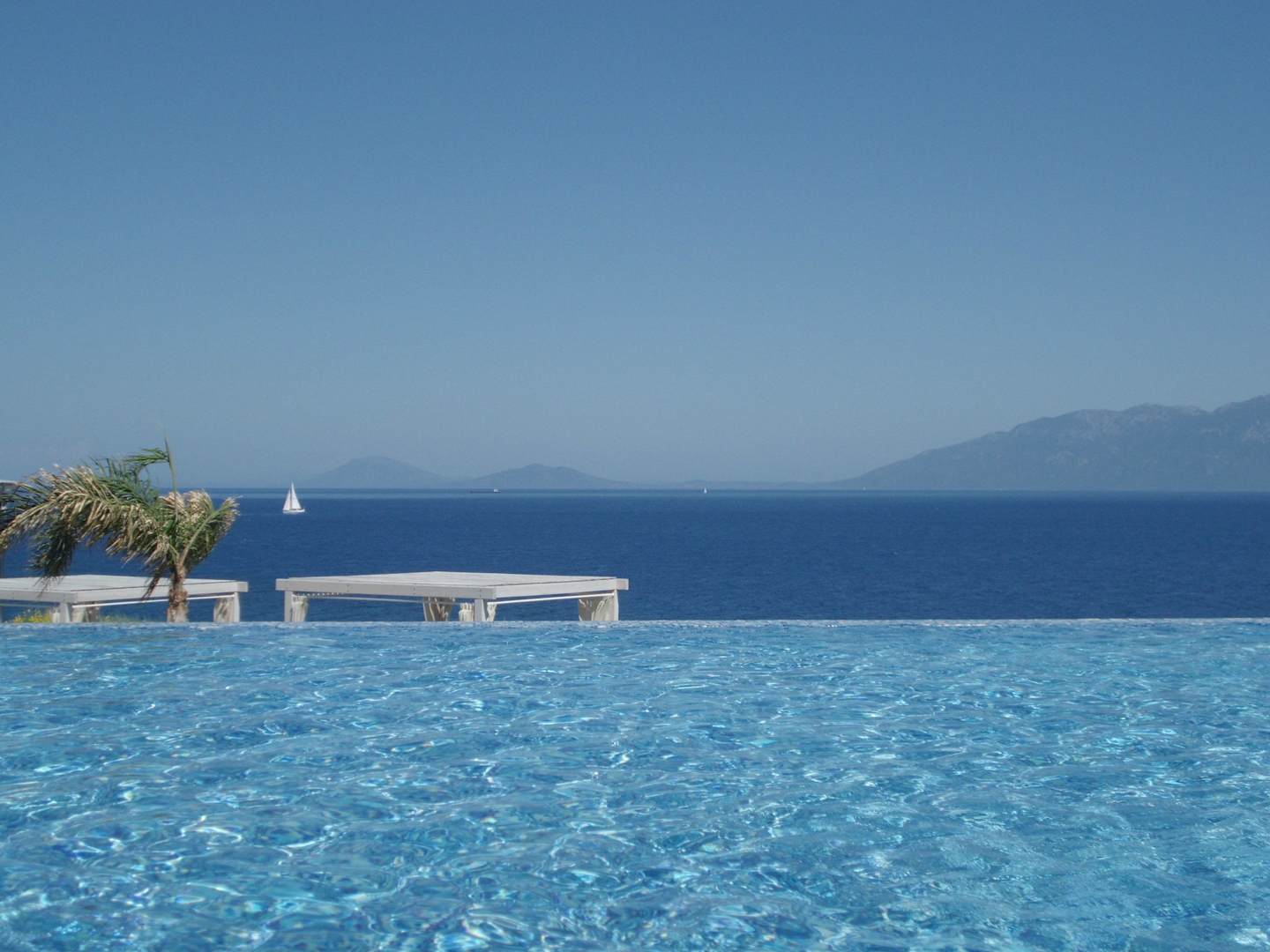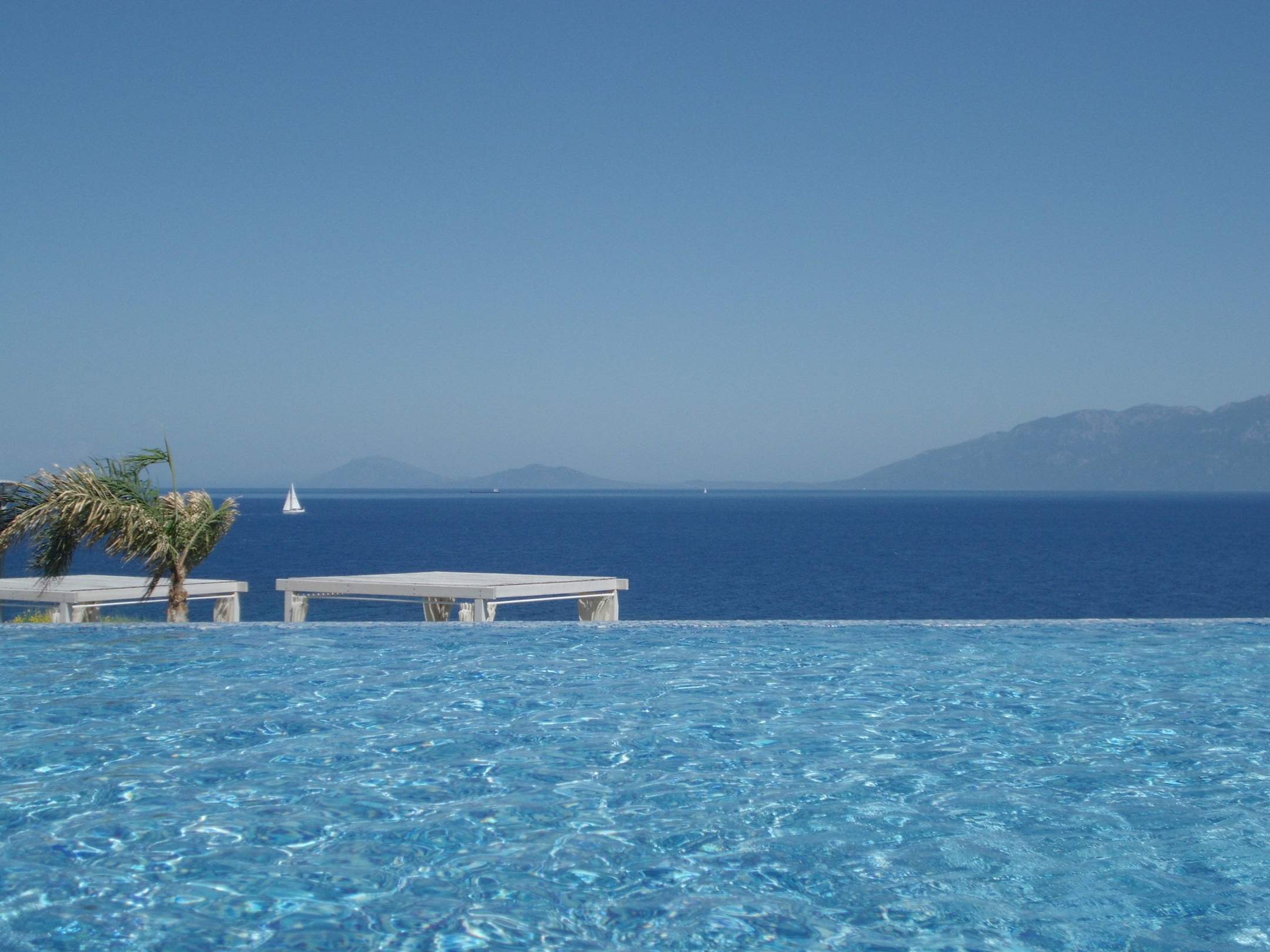 Der große Pool. Im Hintergrund die Türkei