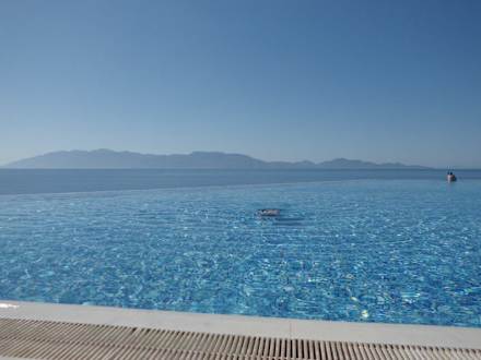 Der große Pool. Im Hintergrund die Türkei
