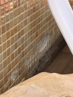 Die Fliesen hinter den Liegen