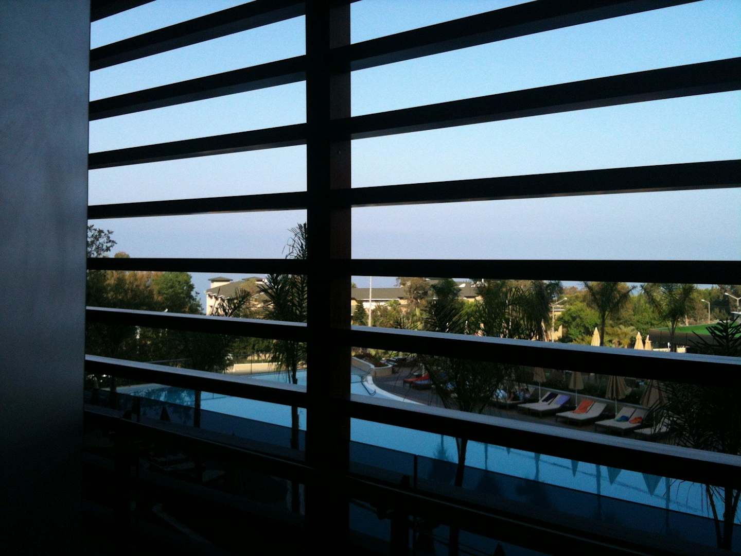 Leider sind an den beiden unteren Stockwerken die Balkone mit solchen Verblendungen versehen. Ein nicht ganz ungetrübter Meerblick.