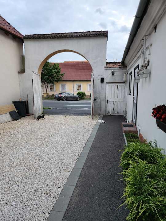 Einfahrt und Parkplätze