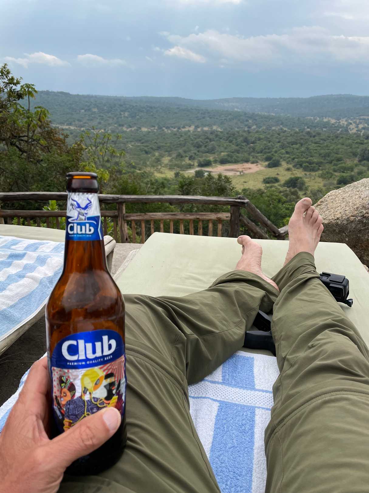 Unten sieht man das Wasserloch und kann Tiere beobachten