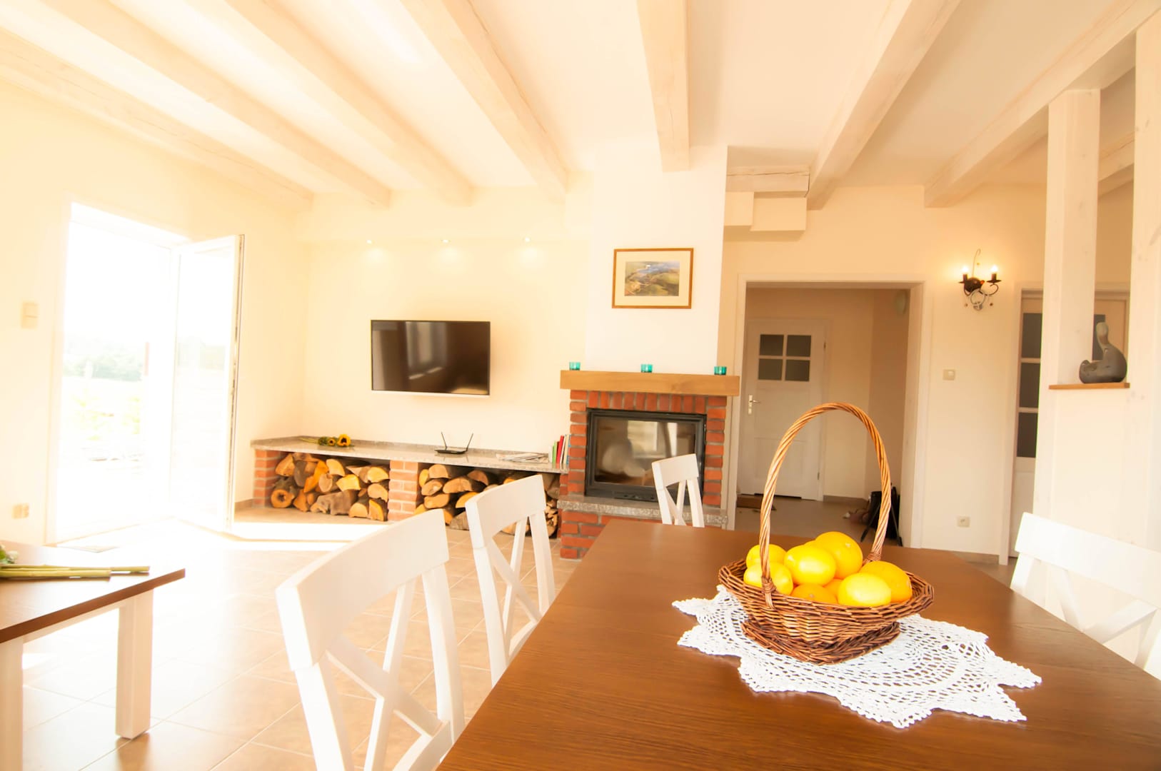 Salon z kominkiem