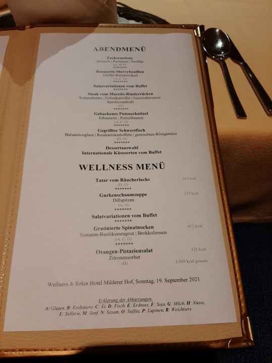 Restaurant, Menukarte