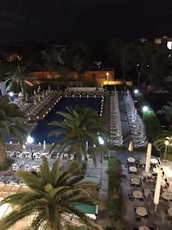 Blick vom Zimmer 4 Stock Pool mit Laternen dekoriert