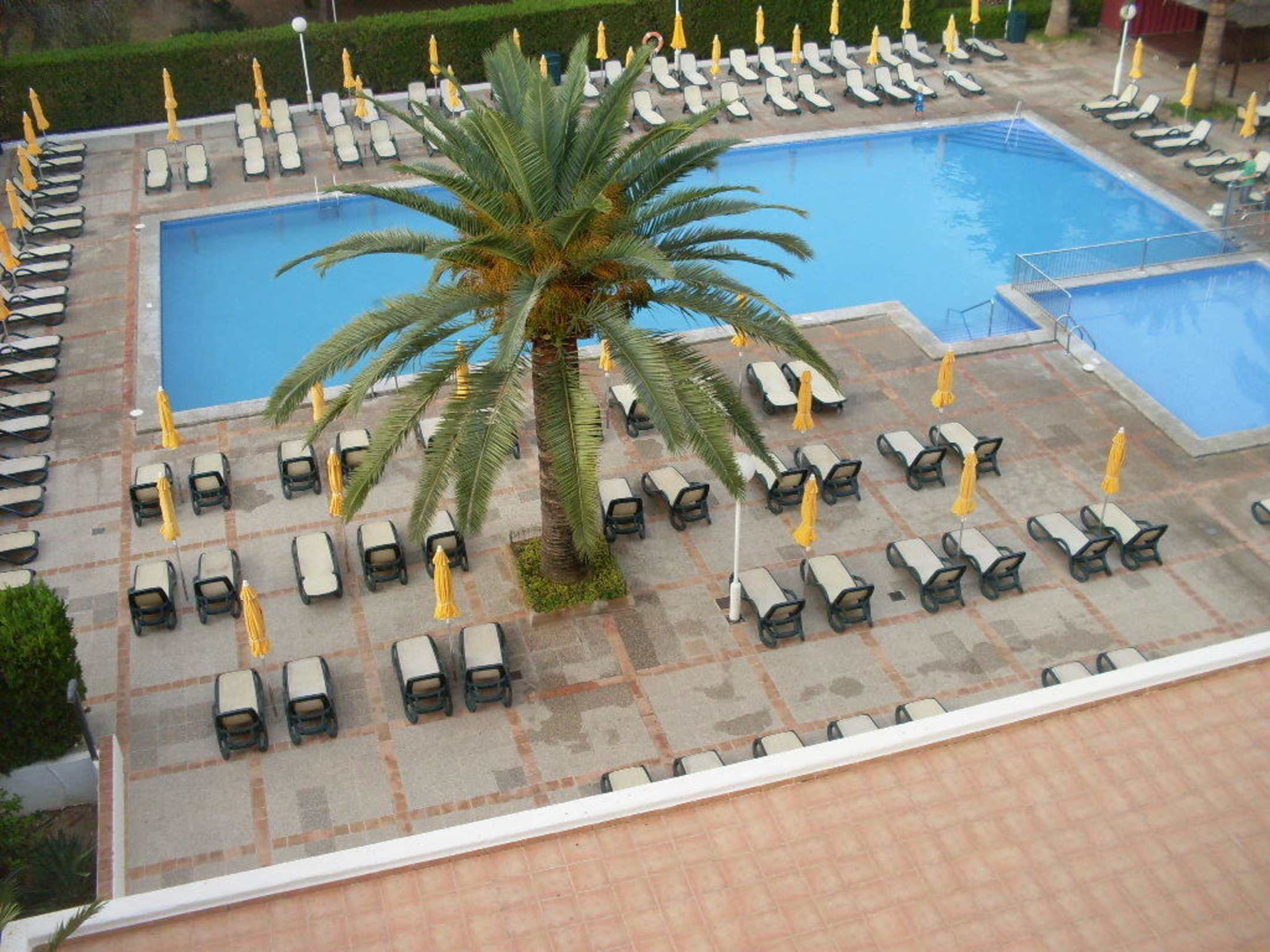 Der große Pool mit viele Liegen & Sonnenschirmen