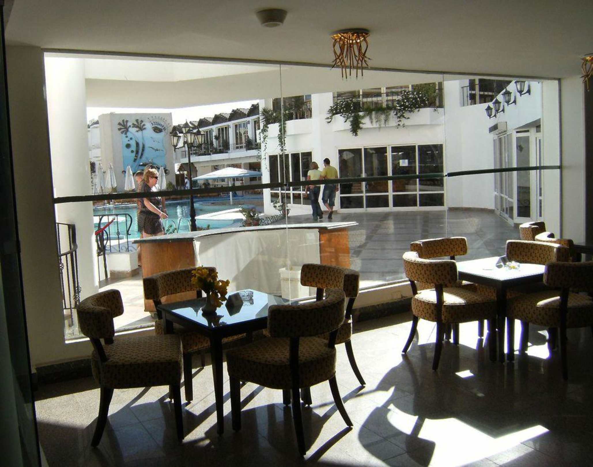 Ausblick auf Swimmingpool: - von hier aus nur noch ca. 150 m bis zum Hotel-eigenen Strand (am Pool vorbei- und nur geradeaus gehen). Wenn man sich stattdessen umdreht....[siehe Bild (2)]