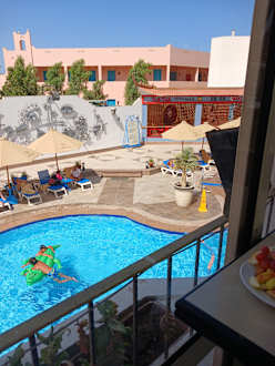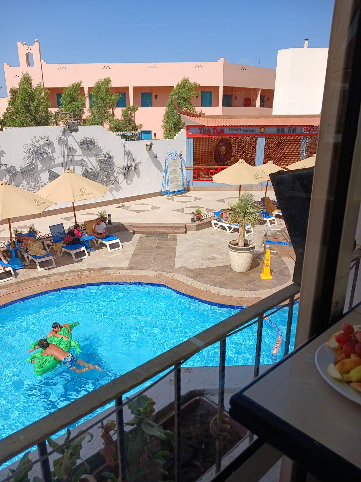 Blick vom Hauptrestaurant auf den Hauptpool