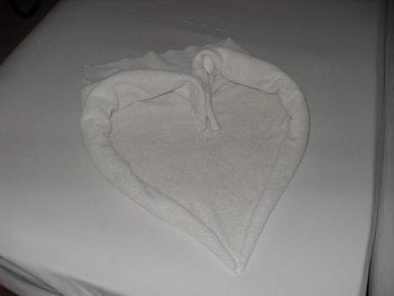 ZimmerDekoration von der Zimmerpflege,aus den benutzten Handtüchern.Total widerlich.