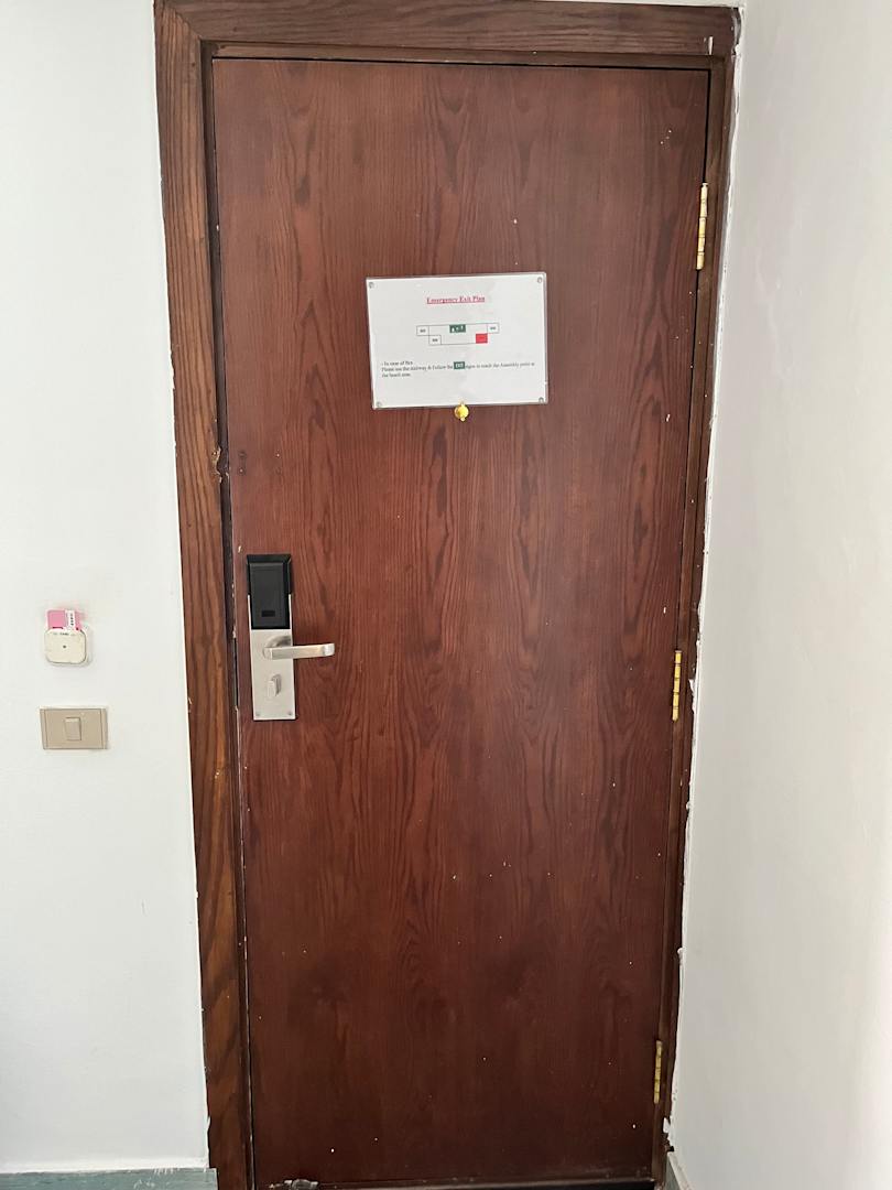Tür innen. Zu doof, um ein Schild gerade aufzuhängen?