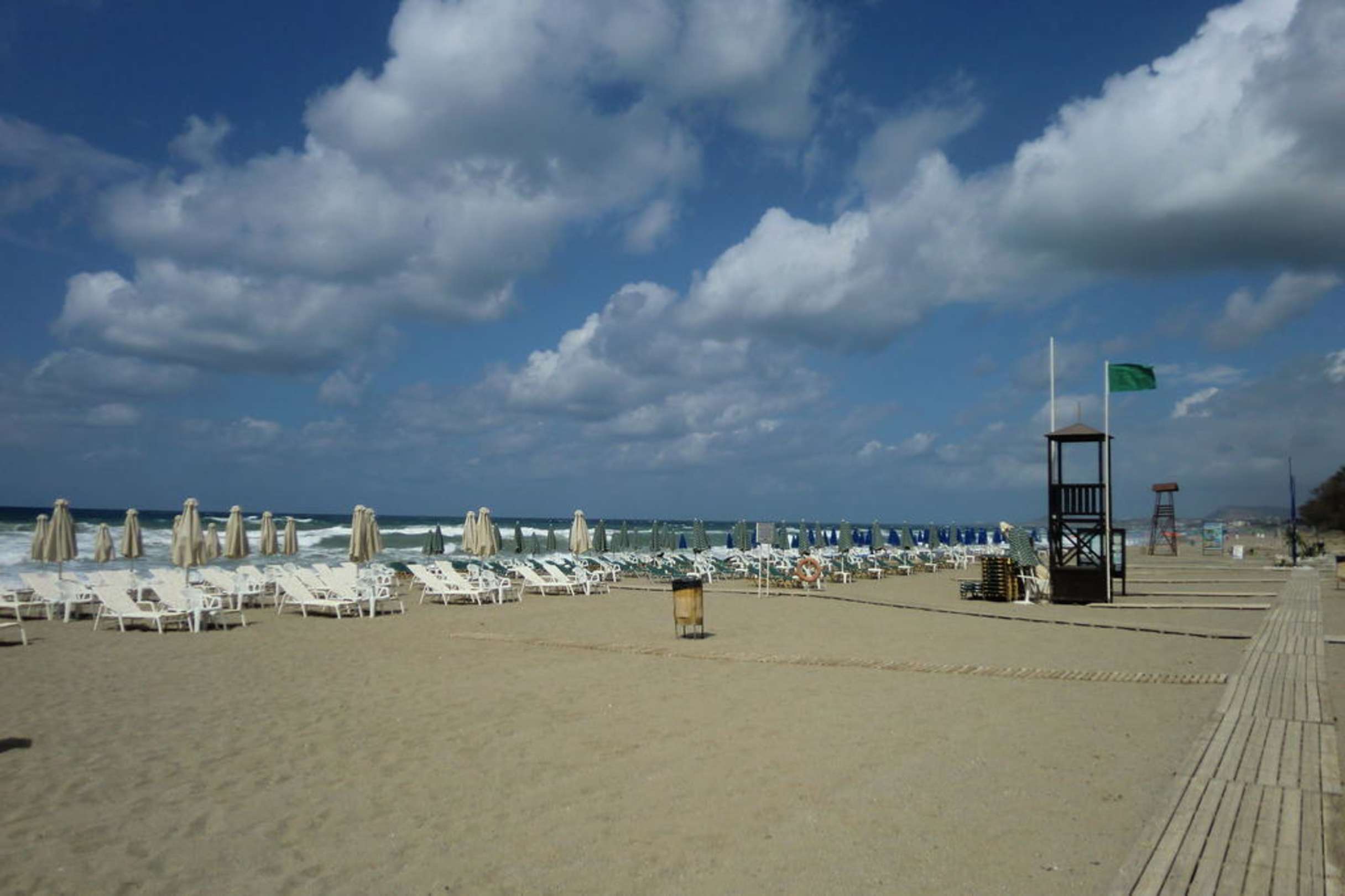 Standabschnitt Strandabschnitt direkt vor dem Hotel. Liegen und Sonnenschirm für die Gäste vom Minos Mare Royal kostenlos