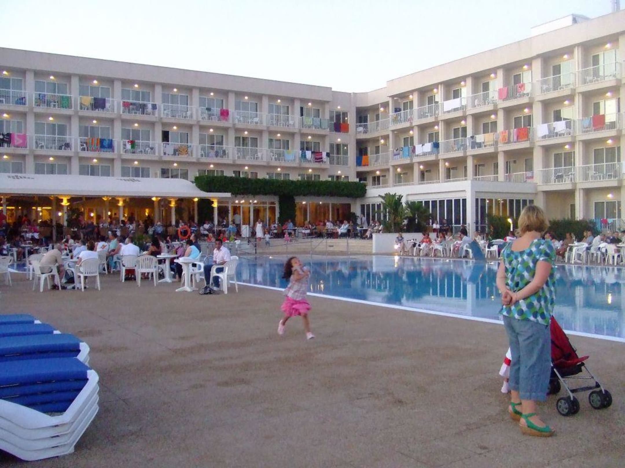 Ausblick vom Pool zum Hotel