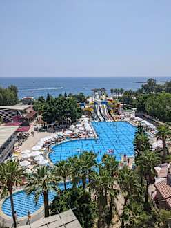Ausblick auf Pool und Rutschen
