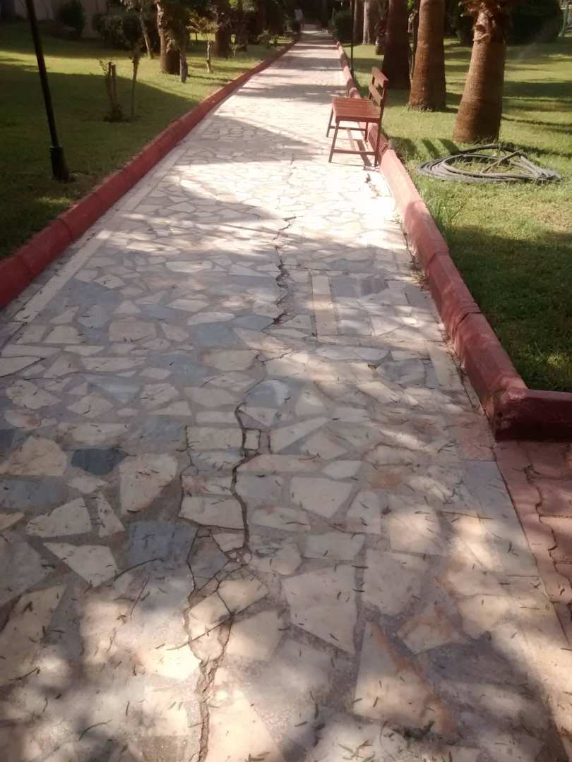 Weg in der Mitte gebrochen,teils lockere Platten u
