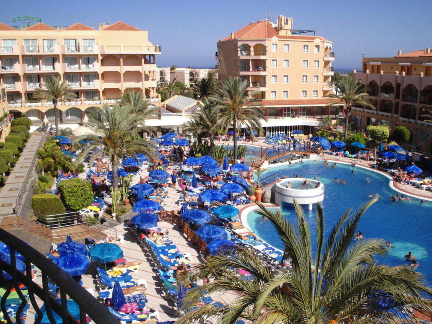Blick vom Balkon auf den Pool