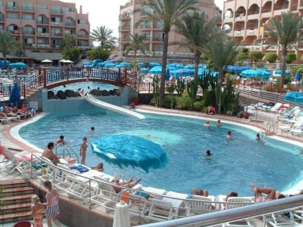 Ein Blick auf einen Teil der Poolanlage des Hotels.