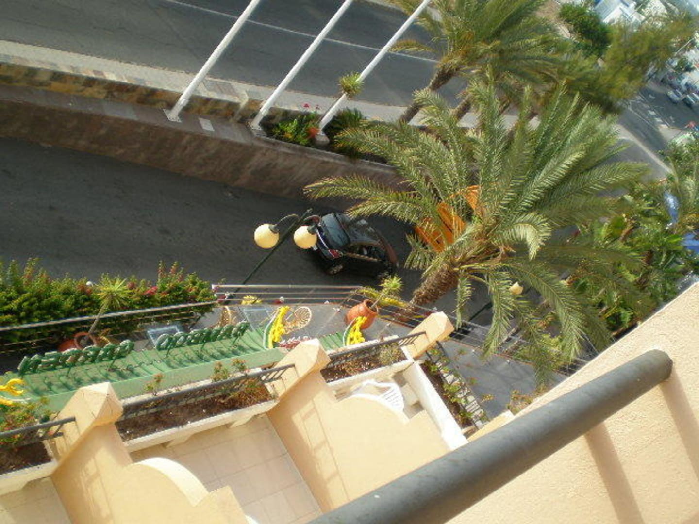 Buszufahrt zum HotelUnter unserem Balkon war die Buszufahrt zum Hotel, wo die Riesen sich doch ordentlich drängelten.