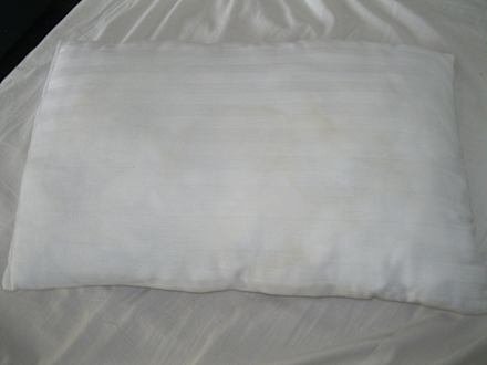 So sieht das Kissen unterm Bezug aus. Es ist total verschwitzt von den Vorgängern mit Schweißrändern und es stank fürchterlich - ich mußte würgen dabei