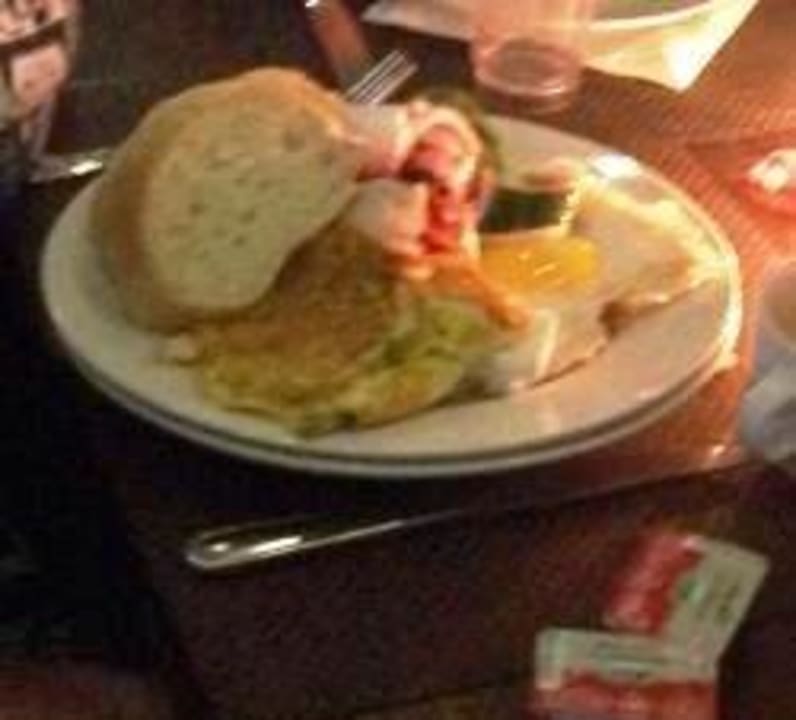 Leckeres FrühstückZum Frühstück gab es Spiegelei, Gurke, Tomate, Käse und Brot.