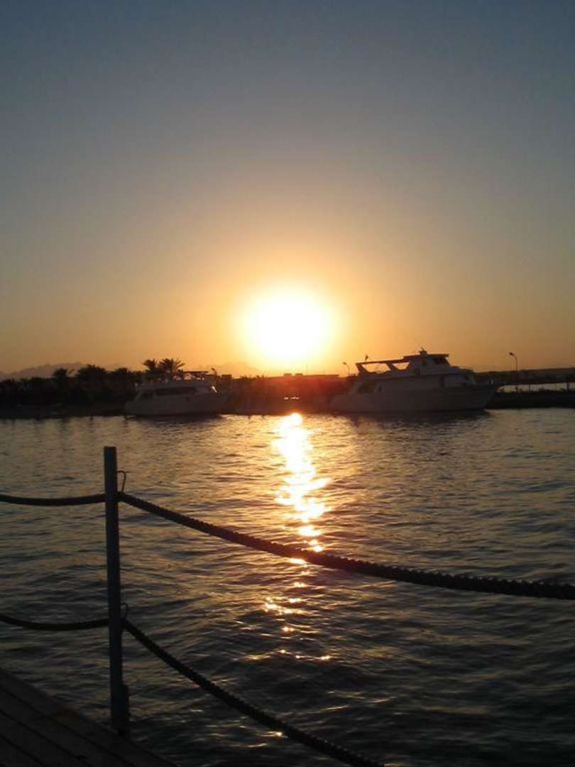SonnenuntergangSonnenuntergang vom Steg zur Bucht, im Hintergrund der Hafen