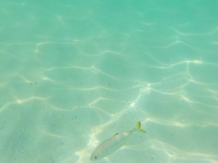 Klares WasserJe nach Wellengang kann man schnorcheln - viele Fische gibt es aber nicht zu sehen. Das Wasser ist meist klar.