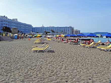 Aussicht auf Hotel Mitsis Grand und West-Strand von Rhodos-Stadt.