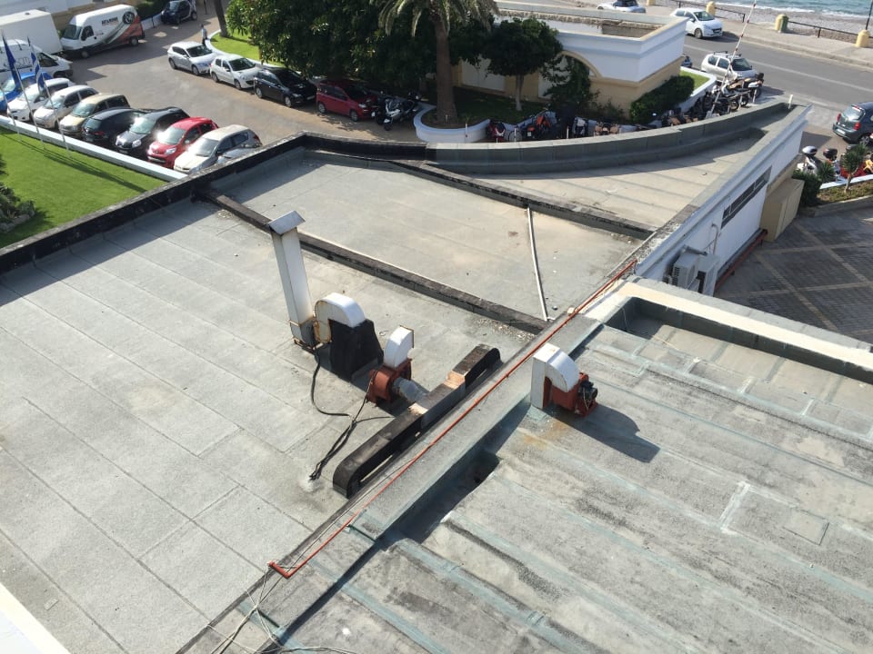 Meerblick mit rauchenden, stinkenden Schornstein