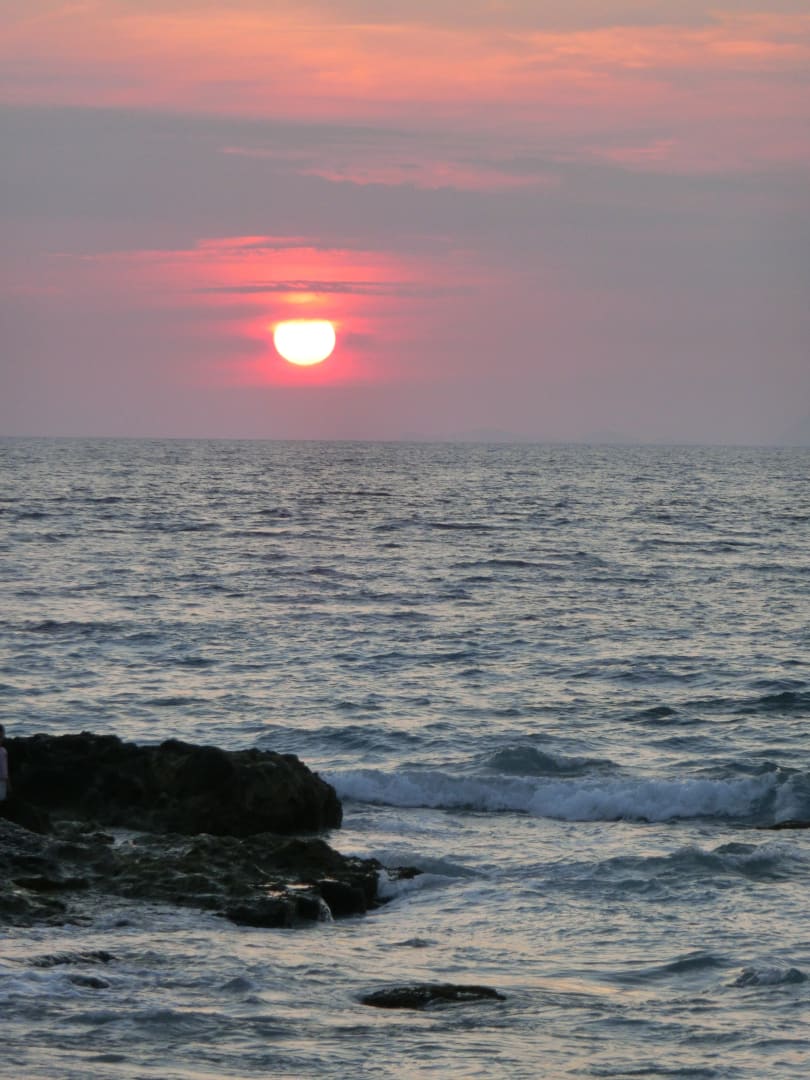 Blick auf schönen Sonnenuntergang vom Hotelstrand aus gesehen.