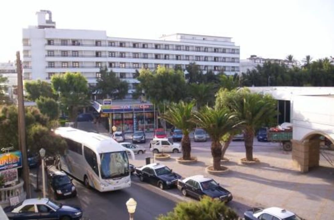 La Vita Zimmeraussicht ganz linksAusblick aus Zi.Nr. 209, gegenüber ein Taxistand und die Ausläufer vom Mitsis Grande