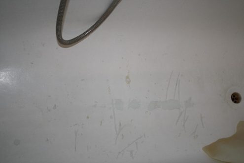 Badewanneabplatzende Farbe in der Badewanne (ja, die Badewanne wurde gepinselt!)