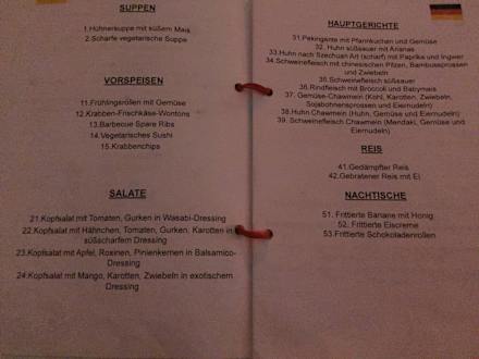 Speisekarte asiatisches Restaurant