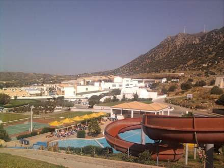 Links Tennis und rechts rießen Wasserrutschen